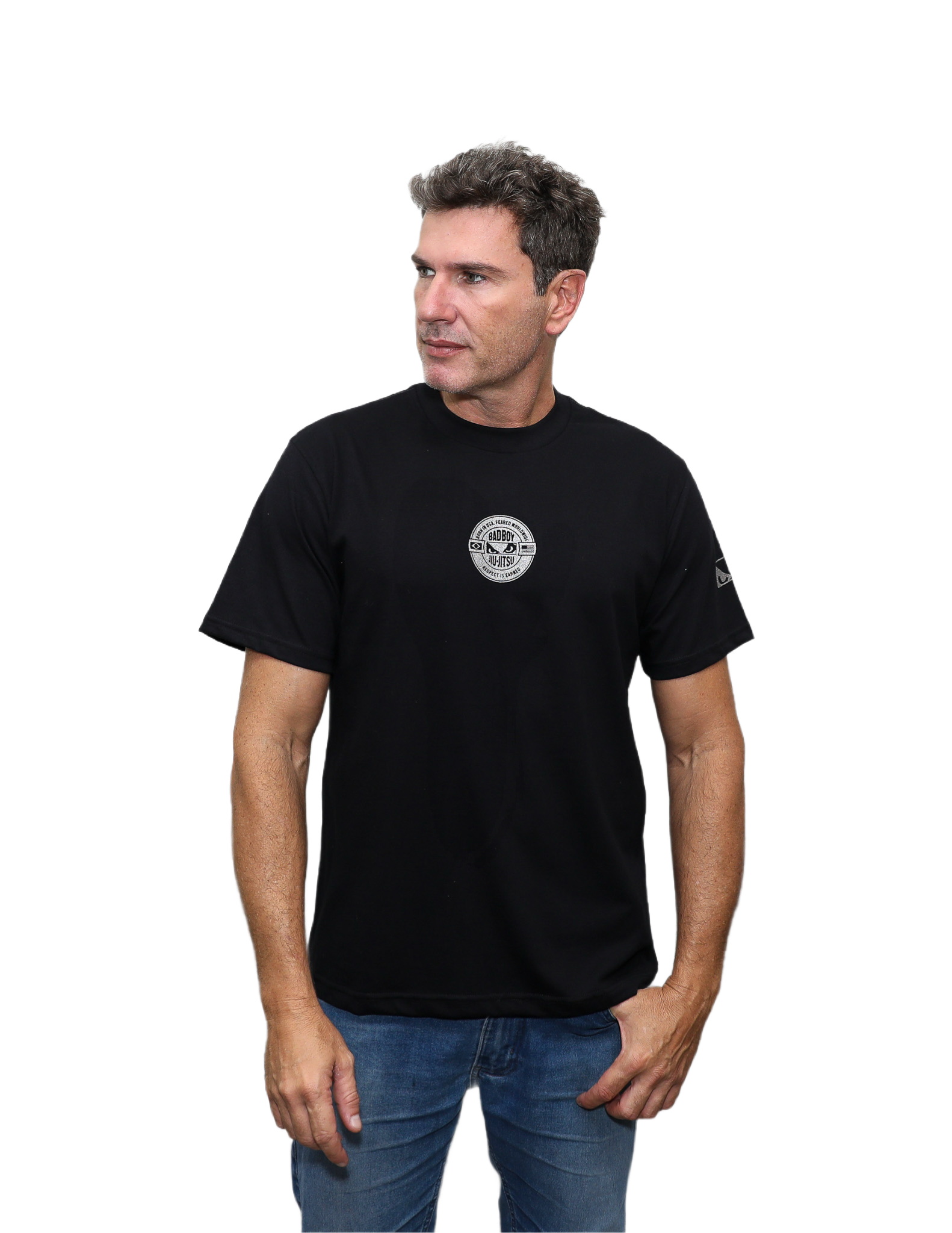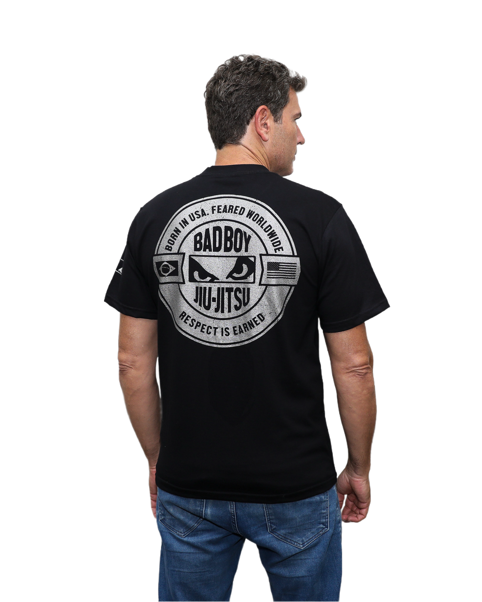 Se destaca pelo brasão nas costas — uma estampa impactante que reúne elementos do Jiu-Jitsu, da força brasileira e da tradição da Bad Boy.