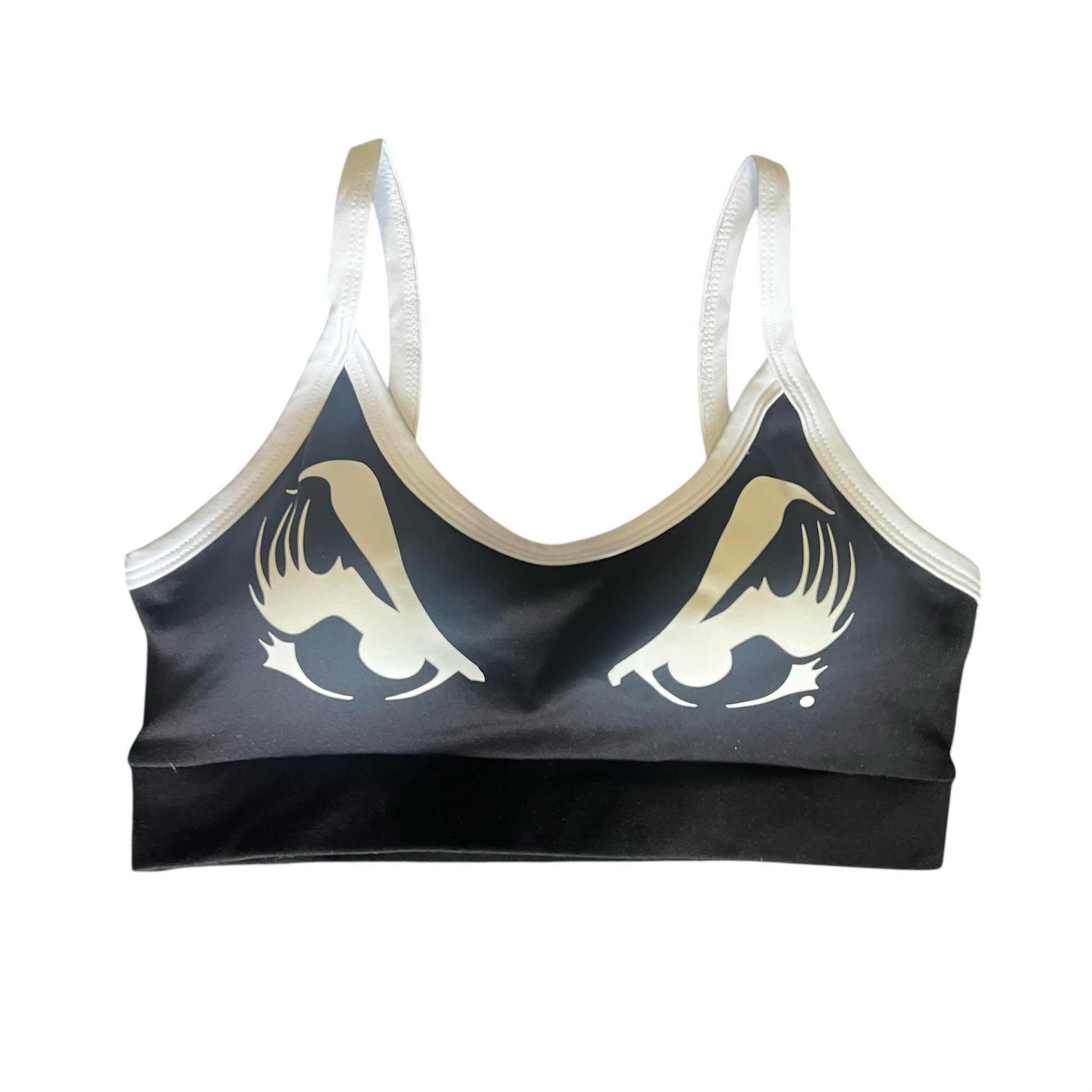 Preto e branco. Possui bojo.